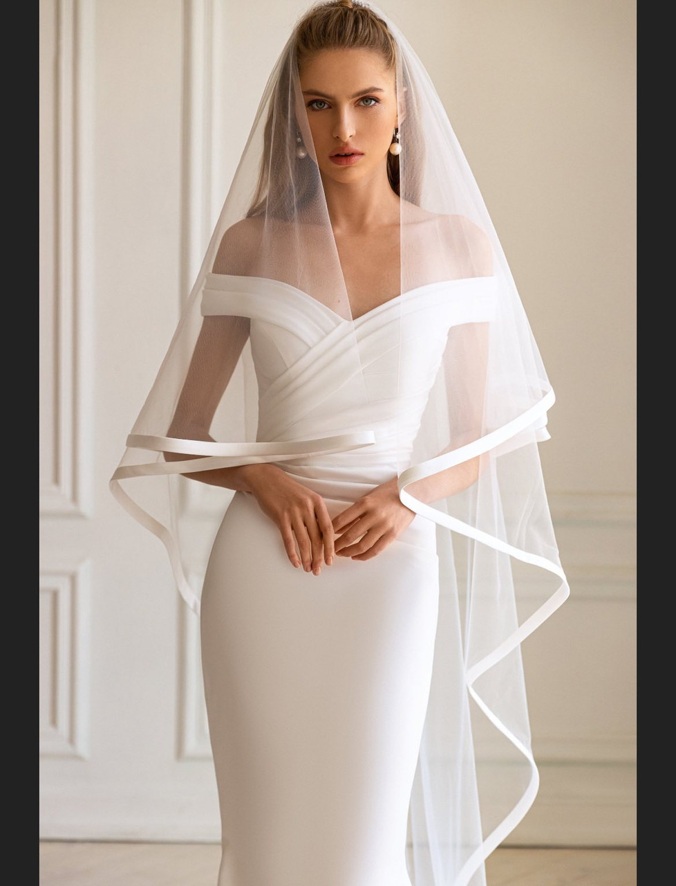 Фата весільна з атласною стрічкою Біла/Айворі Жіноча весільна фата Довга весільна фата